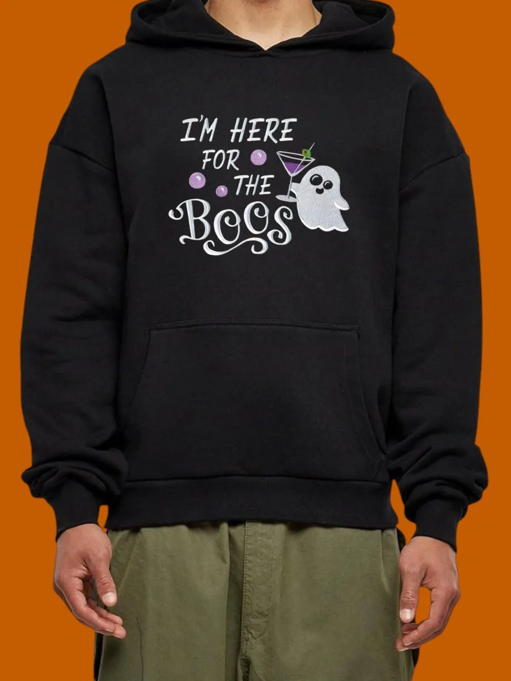 Този забавен и удобен суичър с бродерия е за всички, които не се страхуват да покажат доброто си настроение – и любовта си към хубавите шеги! 👻 Изработено от мека, висококачествена материя, худито осигурява комфорт и топлина дори в най-страшните есенни вечери. Бродерията с надпис “I’m Here for the Boos” е прецизно изпълнена и ще накара всички около вас да се усмихнат. Този суичър с бродерия е идеален както за Хелоуин партита, така и за ежедневието, когато просто искате да внесете щипка настроение и лек сарказъм в деня си. Лесно се комбинира с дънки, спортни панталони или любимите ви кецове – резултатът винаги е стилен и забавен.