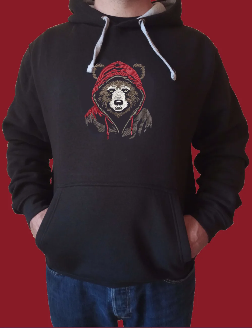Худи с джоб тип “кенгуру” и двойна качулка с подплата и връзки. Има ластик на кръста и ръкавите. Много добра комбинация на памук и полиестер, който от една страна не позволява избеляване и ставане на топчета(пилинг), от друга прави материята по дебела, пухкава и мека на допир.