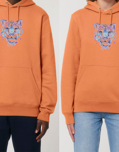 Худи с джоб тип „кенгуру“ и двойна качулка с подплата и връзки. Има ластик на кръста и ръкавите. Много добра комбинация на памук и полиестер, който от една страна не позволява избеляване и ставане на топчета(пилинг), от друга прави материята по дебела, пухкава и мека на допир.