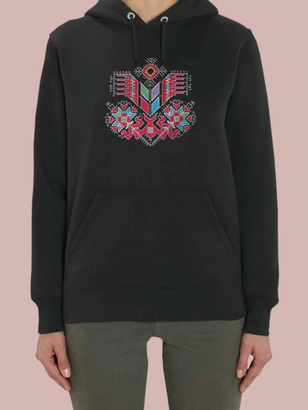 Дизайнът „Дървото на живота“ е древен символ, срещащ се в различни български шевици, носещ послание за сила, растеж и вечност. Нашия дамски суичър с шевица съчетава класически комфорт с културно наследство, вплетено в съвременен моден стил. Всеки детайл от бродерията е изработен с внимание и майсторство, за да се подчертае естествената елегантност и уникалността на изделието. Съчетава се перфектно с дънки, спортни панталони или кецове – подходящ както за ежедневието, така и за специални поводи, когато искате да покажете нещо различно и стойностно. Този дамски суичър с шевица е едновременно израз на вкус, идентичност и принадлежност.