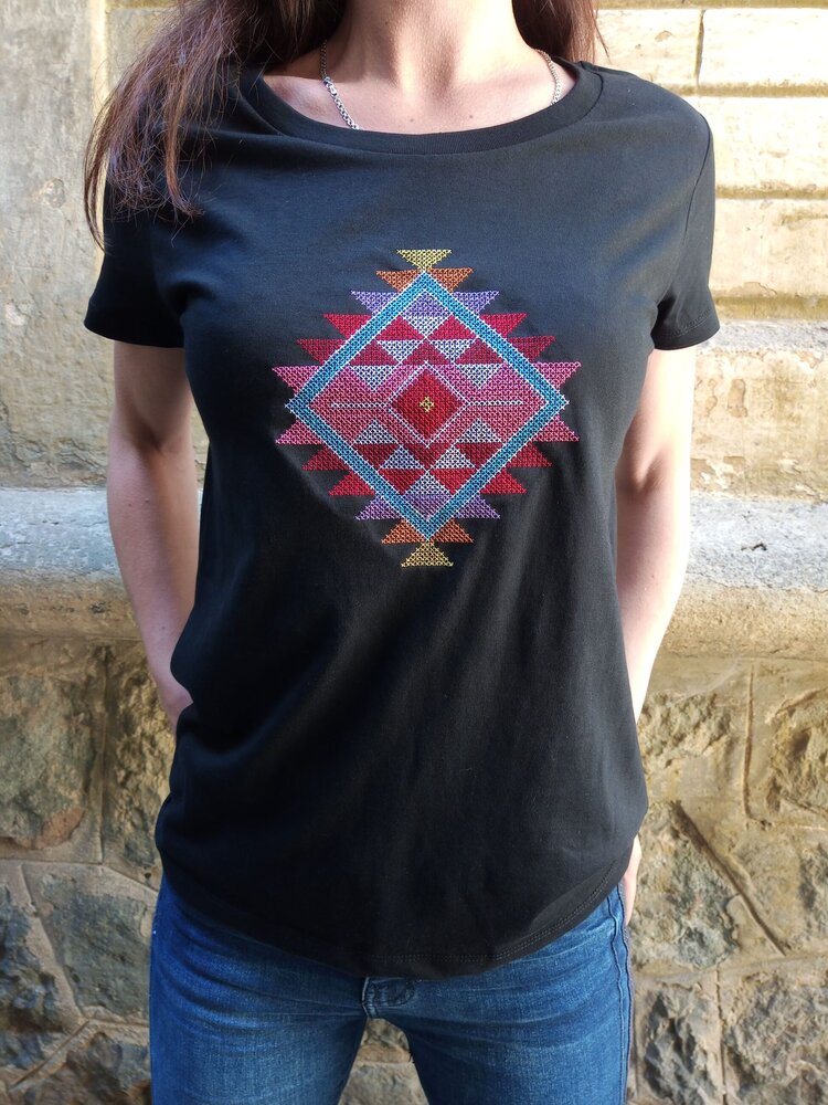 Вижте повече подробности за нашата уникална дамска тениска с българска шевица Канатица.