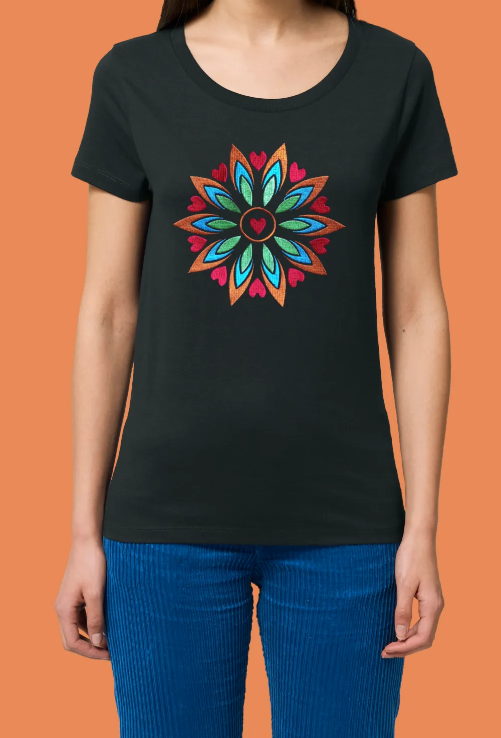 Дамска тениска с бродерия Мандала сърца